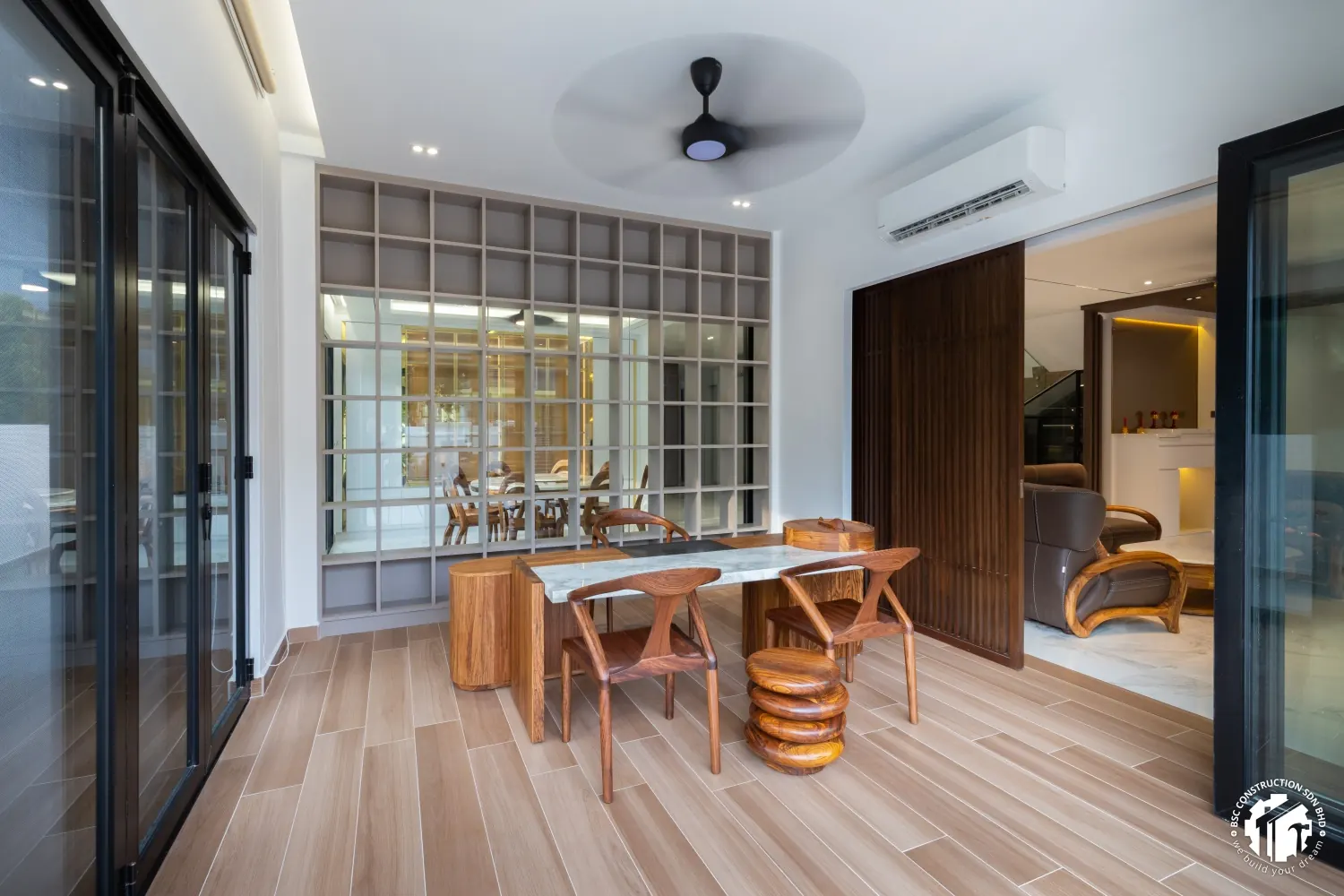 From structural steelwork and roofing to custom cabinetry and ambient lighting — every element was planned and executed by our team. As experienced house renovation contractors, BSC Construction managed the entire project under one roof: architecture, structural works, M&E, interior design, and landscaping.